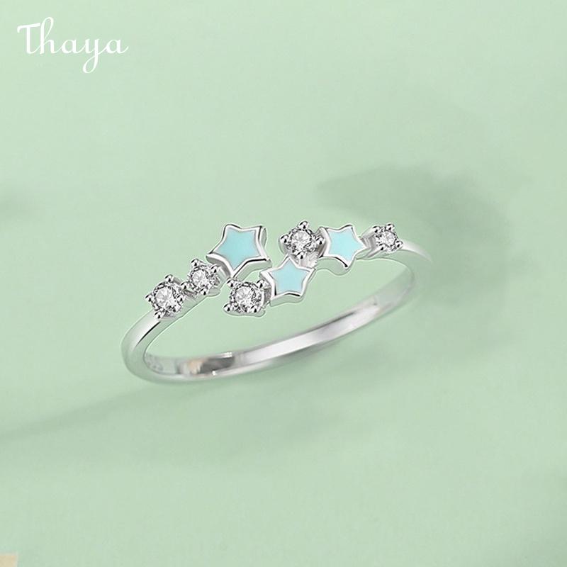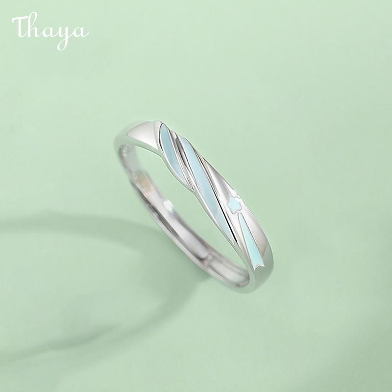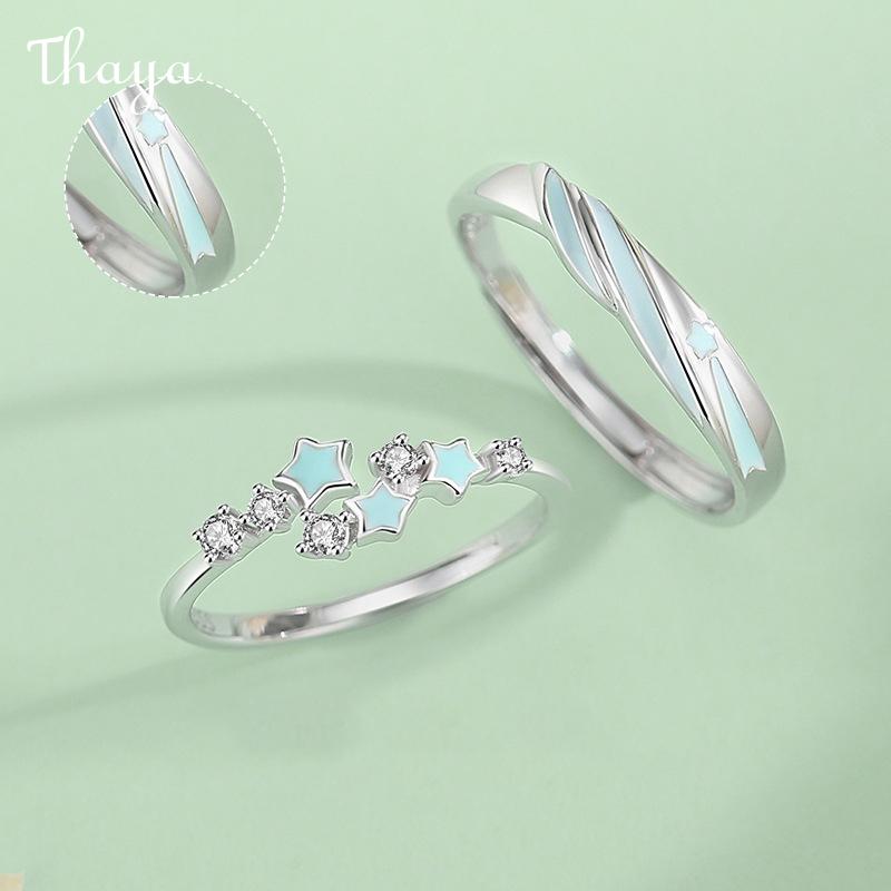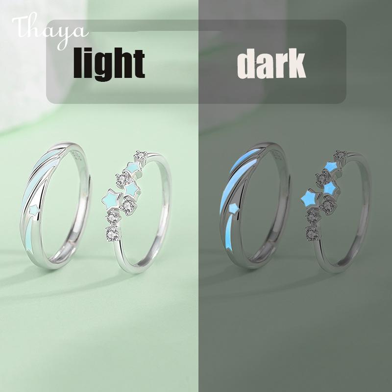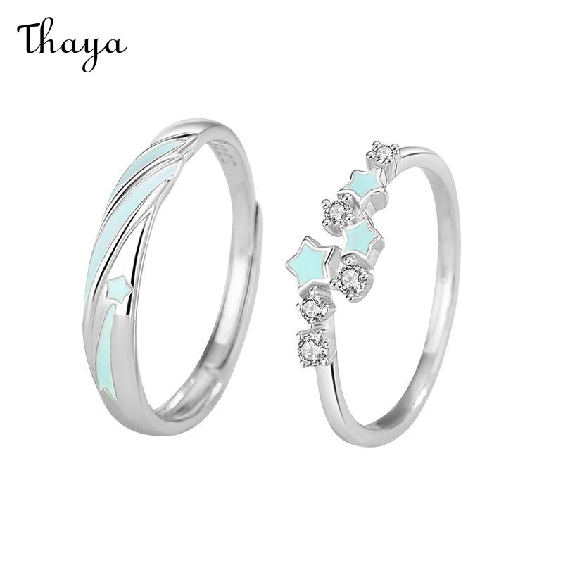 Thaya S925 Silver Enamel Luminous Meteor Shower Couple Rings