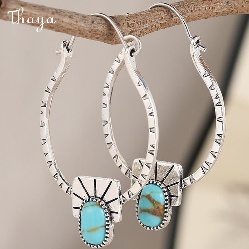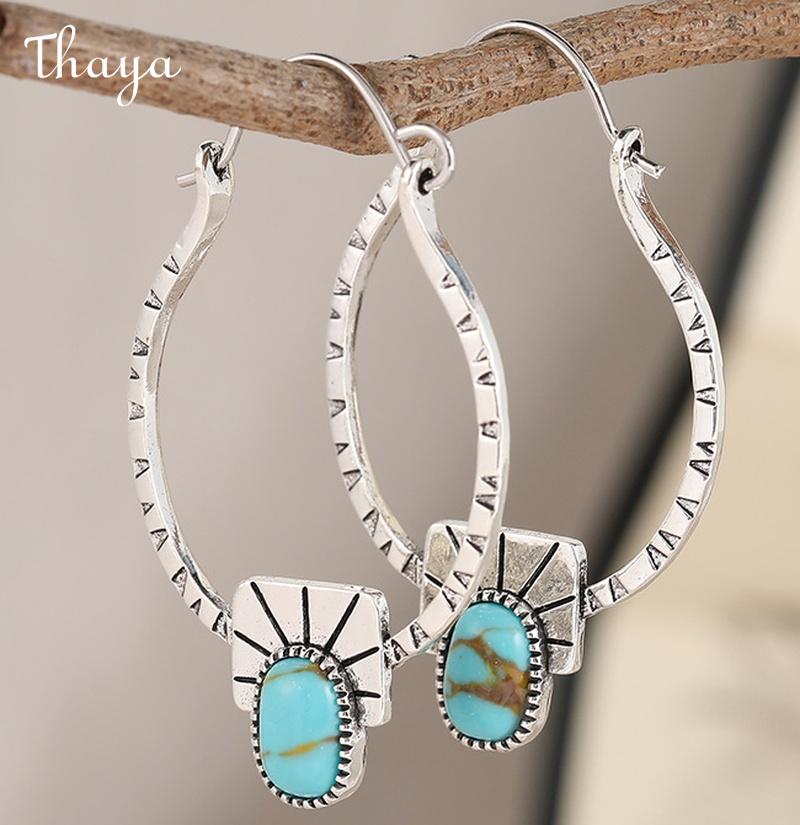 • Turquoise Accent: Oval turquoise stone set in a decorative square frame.
